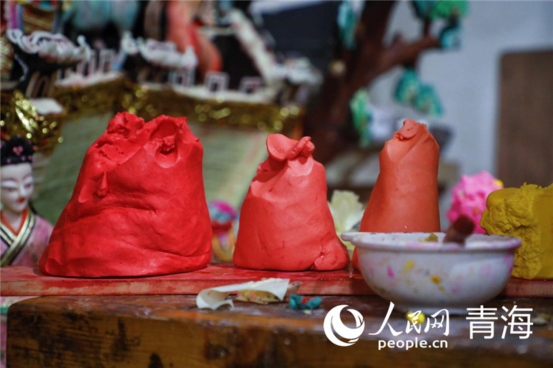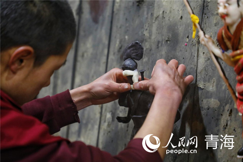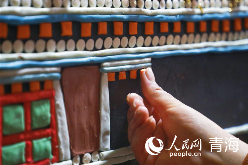 藝僧正在制作酥油花。人民網(wǎng) 張皓芃 攝
