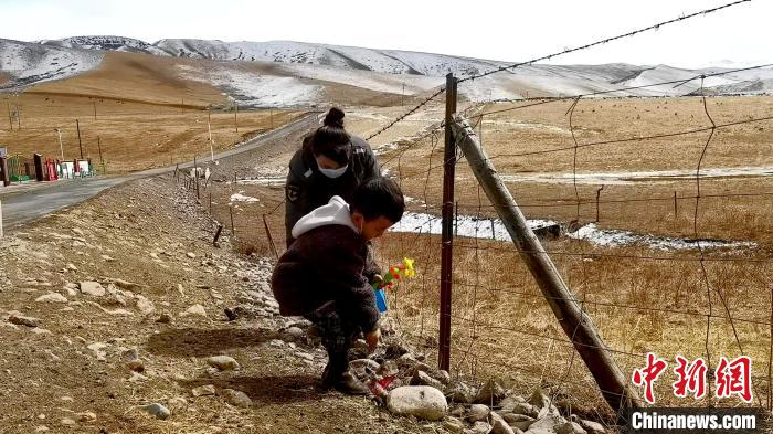 在青海省海北藏族自治州祁連縣青陽溝內(nèi),3歲的小扎西轉(zhuǎn)動著手中的風(fēng)鈴,跟在母親忠可措身后開始一天的巡山。