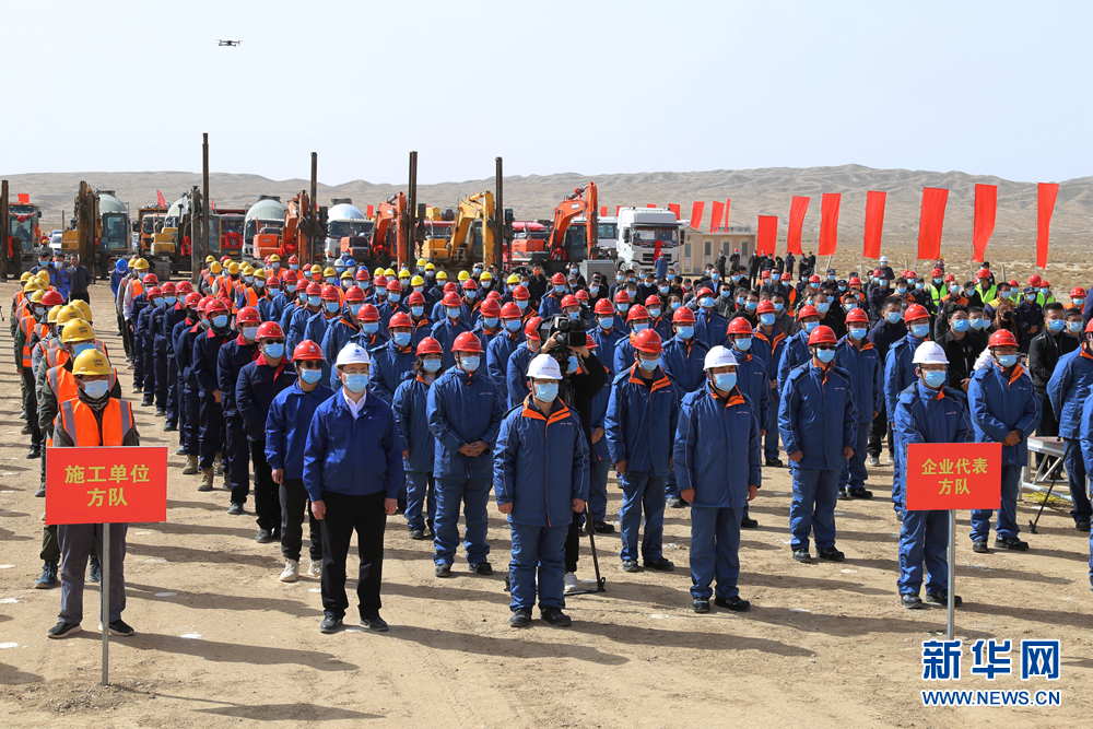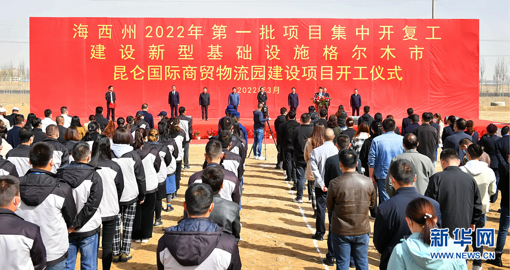 海西州2022年首批項(xiàng)目集中開(kāi)復(fù)工儀式格爾木市現(xiàn)場(chǎng)。新華網(wǎng) 馮春梓 攝