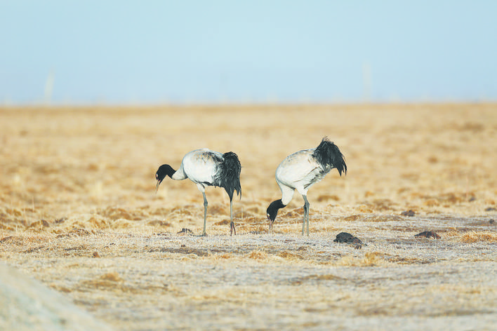 “通常在濕地內(nèi)看到黑頸鶴,如果走近它們,它們便會迅速飛走,和人保持安全距離。”如科告訴記者,那日凌晨,他第一次與黑頸鶴離得那么近,不忍走出門外,就在窗戶后面靜靜地觀看這對黑頸鶴夫婦。