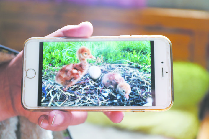 “我們與這對黑頸鶴相識五年之久了,每年三月,它們都會從云南遷回這里?;貋肀囟ń?jīng)過監(jiān)測站門前,我們就像親人一樣?!比缈颇贸鍪謾C翻看在巡護期間拍到的黑頸鶴影像,講起了他們和黑頸鶴夫婦的故事。