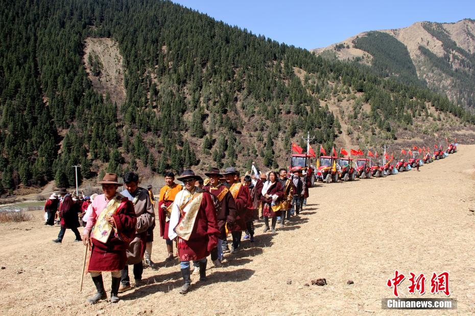圖為身著節(jié)日盛裝的民眾進(jìn)行耕地。班瑪縣委宣傳部 供圖