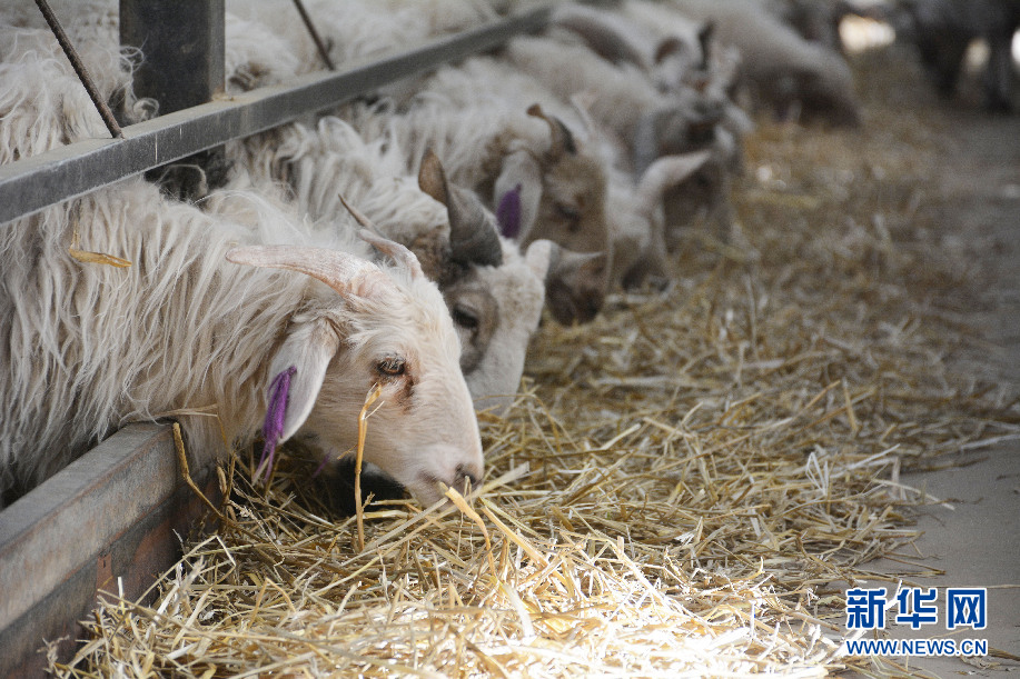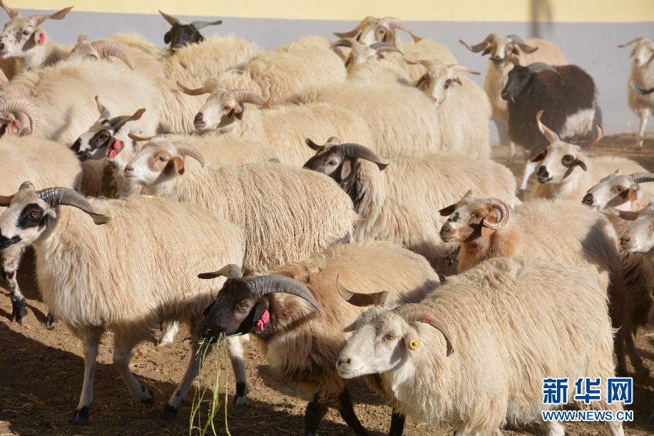 在共和縣倒淌河鎮(zhèn)次汗達哇村的藏羊養(yǎng)殖基地,藏羊在進食草料(資料圖)。新華社記者 柳澤興 攝