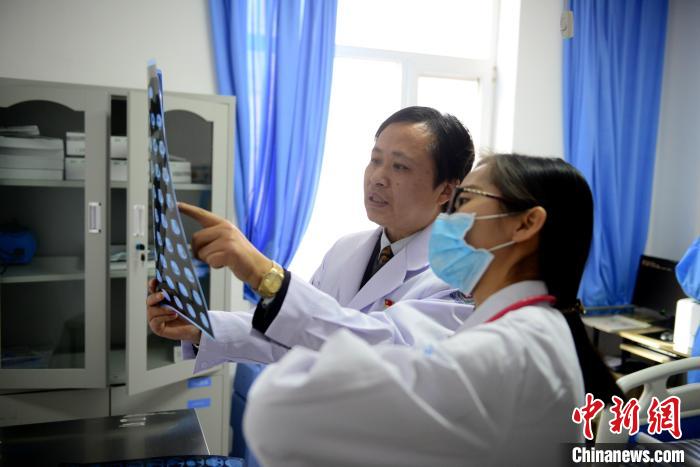 圖為陳水芳與同事分析片子。吳婷婷 攝