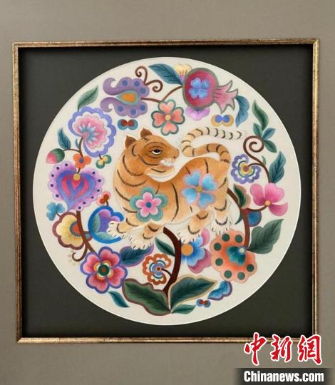 楊華珍的刺繡作品《十二生肖——虎》。受訪者供圖