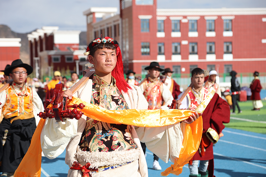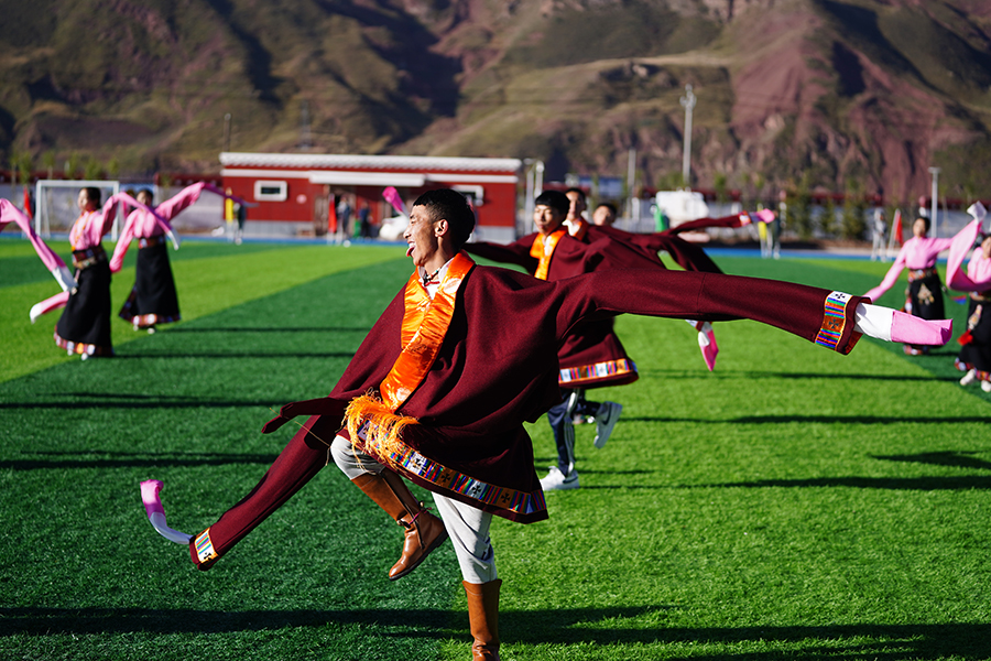 青海師范大學附屬玉樹實驗學校于2019年建成,是北京市教委、首都師大、玉樹州政府、青海師范大學共同興辦的民族高中?!皩W?;凇咴厣?、現(xiàn)代氣息、師大風范’這樣的起點,希望培養(yǎng)出有情懷、有中國靈魂、有世界眼光的民族英才?!狈蓭r說。