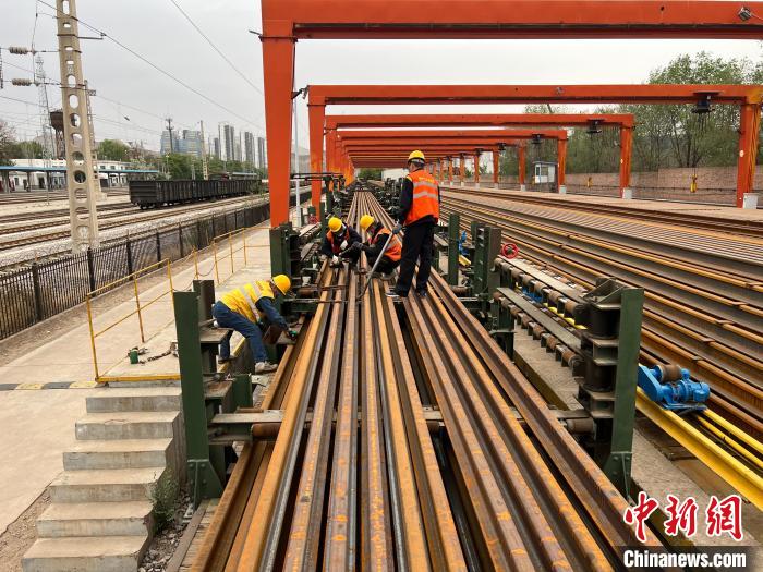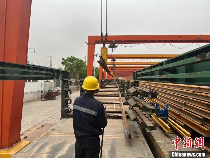 圖為職工正在擺放長(zhǎng)軌。張遠(yuǎn) 攝