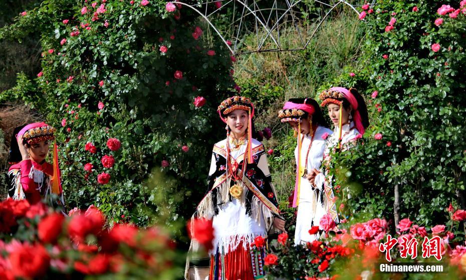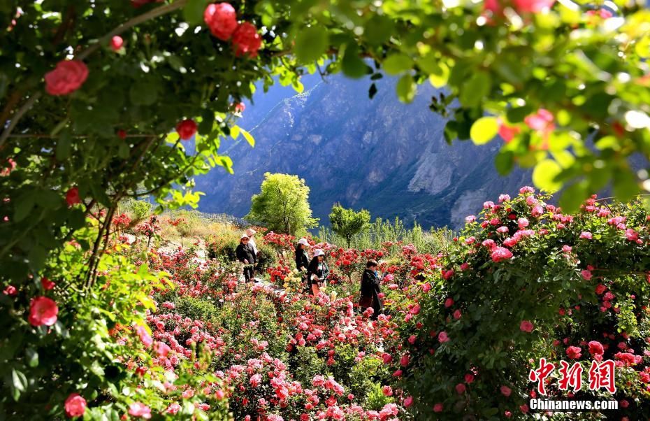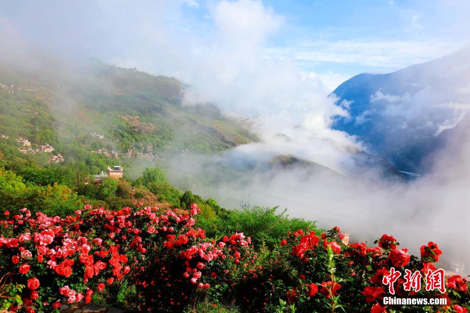 四川丹巴甲居藏寨20余畝玫瑰花盛開美如畫