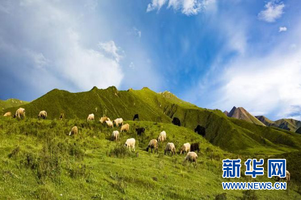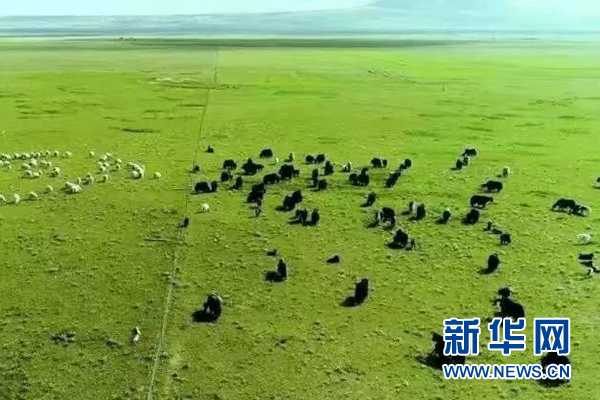 海南州興??h一處牧場(chǎng)上牛羊在覓食。新華網(wǎng)發(fā)