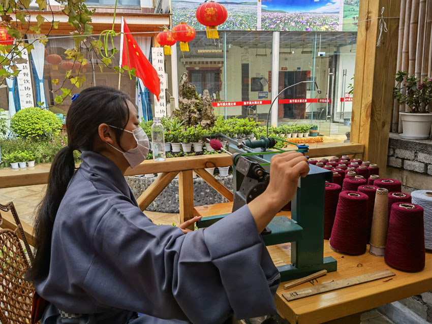 2022年5月12日,“5·12”汶川特大地震抗震救災(zāi)14周年紀念日,山鷹帶著幾個員工來到漁子溪,在汶川縣黨委、映秀鎮(zhèn)黨委、漁子溪村兩委及當?shù)厝罕姷臒崆閹椭?,舉辦了“藍措馬”品牌圍巾展示活動。村里還積極幫助他們尋找合適的房屋作為編織車間,讓他們先在漁子溪站住腳。