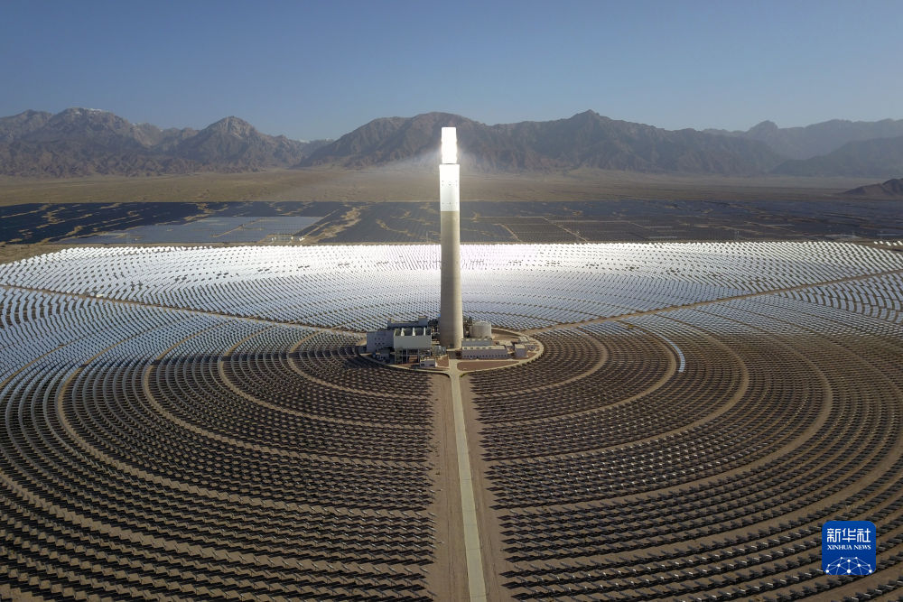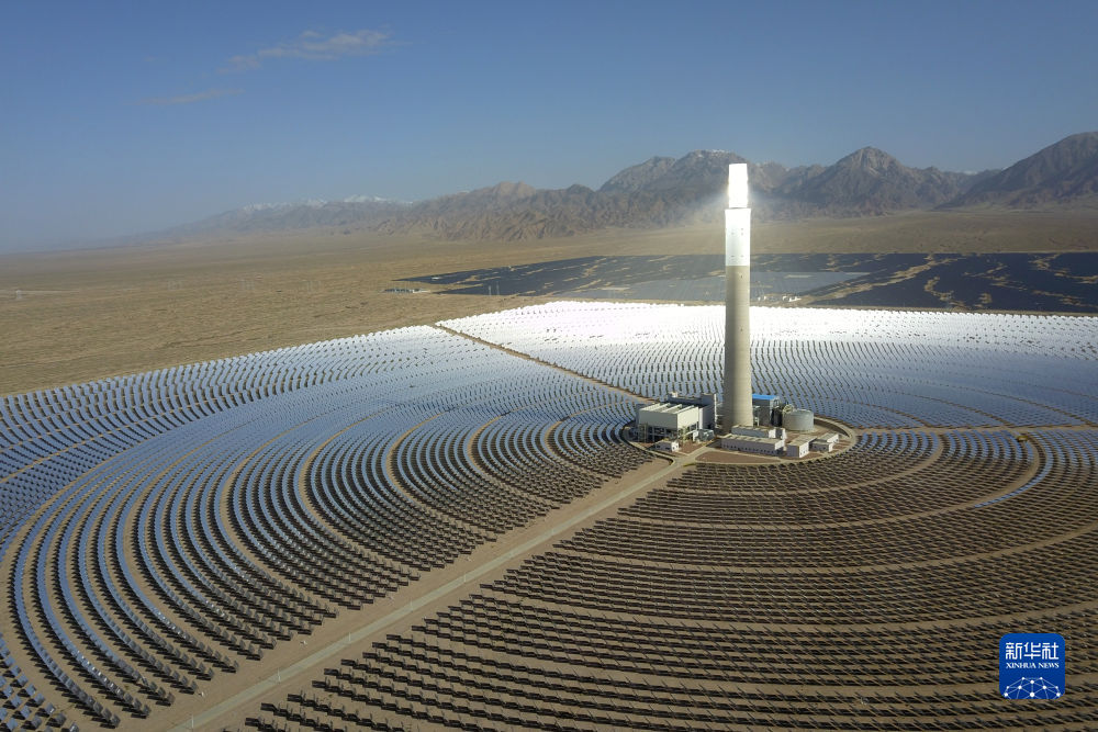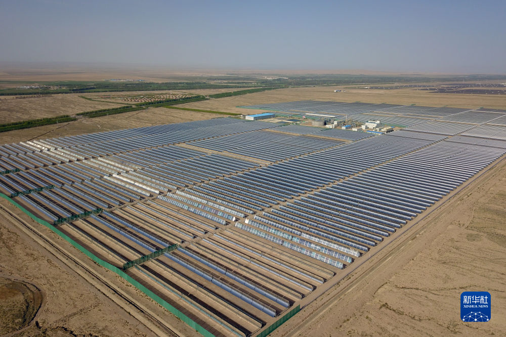 這是6月8日在海西蒙古族藏族自治州德令哈市光伏(光熱)產(chǎn)業(yè)園拍攝的青海中控德令哈50兆瓦光熱電站(無人機(jī)照片)。新華社記者 范培珅 攝