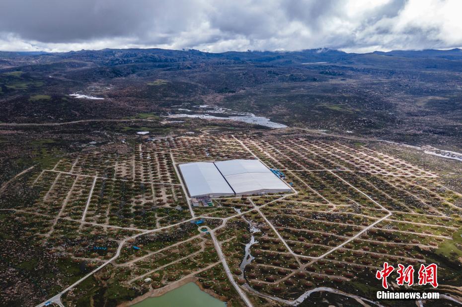 6月28日,四川稻城,觀測站中間房屋結(jié)構(gòu)為水切倫科夫探測器。海拔4410米的四川省甘孜州稻城縣海子山,5216個電磁粒子探測器和1188個繆子探測器,以及占地78000平方米的水切倫科夫探測器有序分布在1.36平方公里范圍,十分壯觀,這是中國建設(shè)的第三代高山宇宙線實(shí)驗(yàn)站。中新社記者 劉忠俊