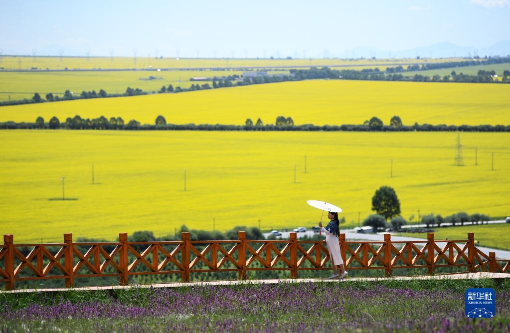 7月3日,游客在青海省海北藏族自治州門源回族自治縣境內(nèi)一處景區(qū)游玩。新華社記者 張龍 攝