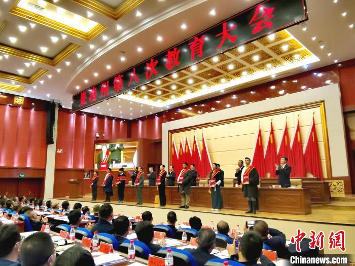 圖為青海省果洛州第八次教育大會現(xiàn)場。張?zhí)砀!z
