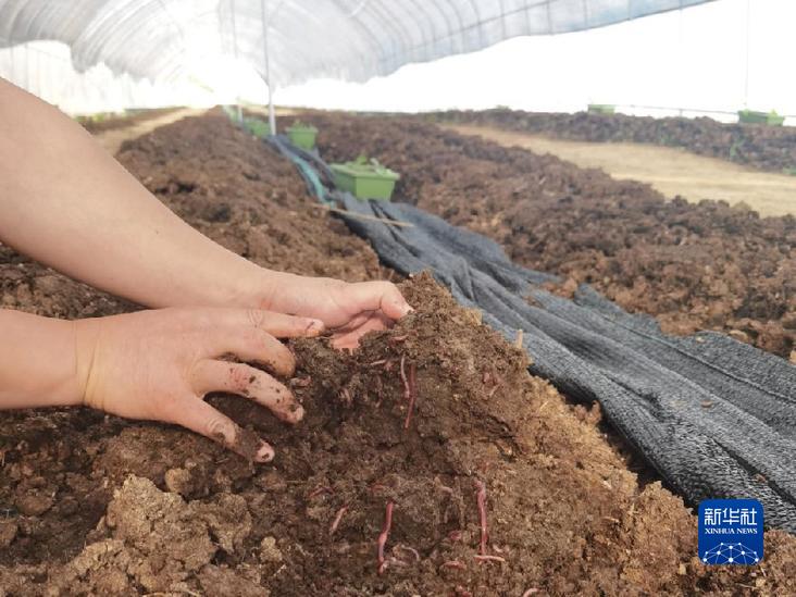 阿壩州遠(yuǎn)龍養(yǎng)殖有限公司在大棚里用牛糞養(yǎng)蚯蚓。新華社記者 李倩薇 攝