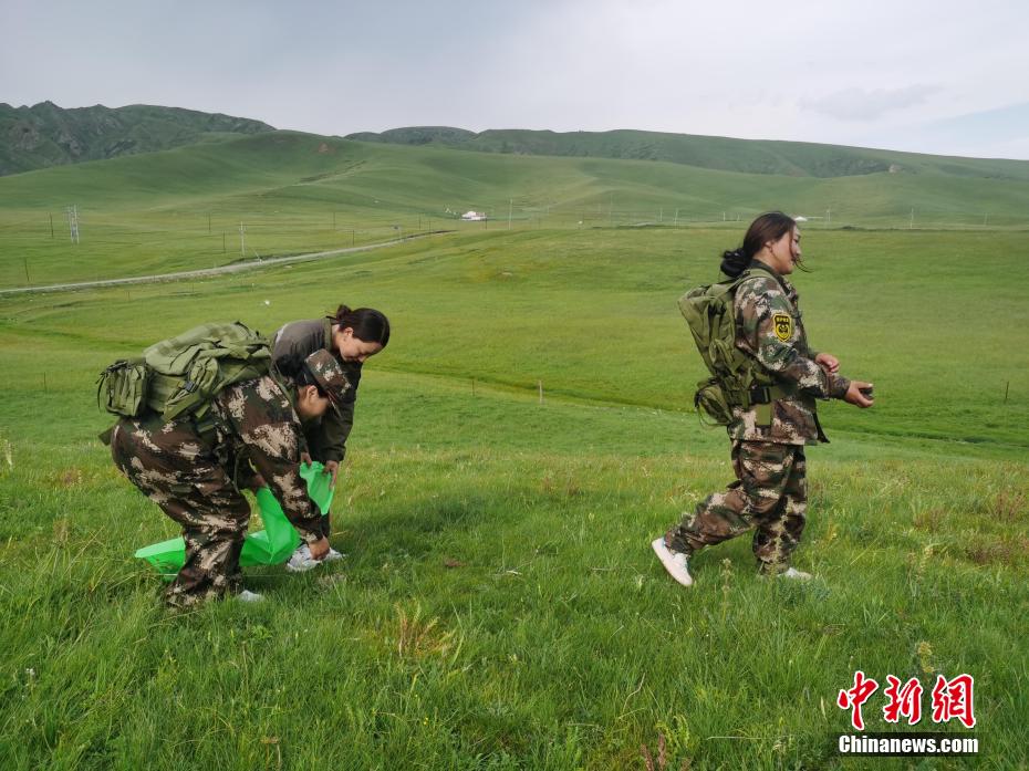 圖為生態(tài)管護(hù)員在草原撿拾垃圾。張?zhí)砀?攝