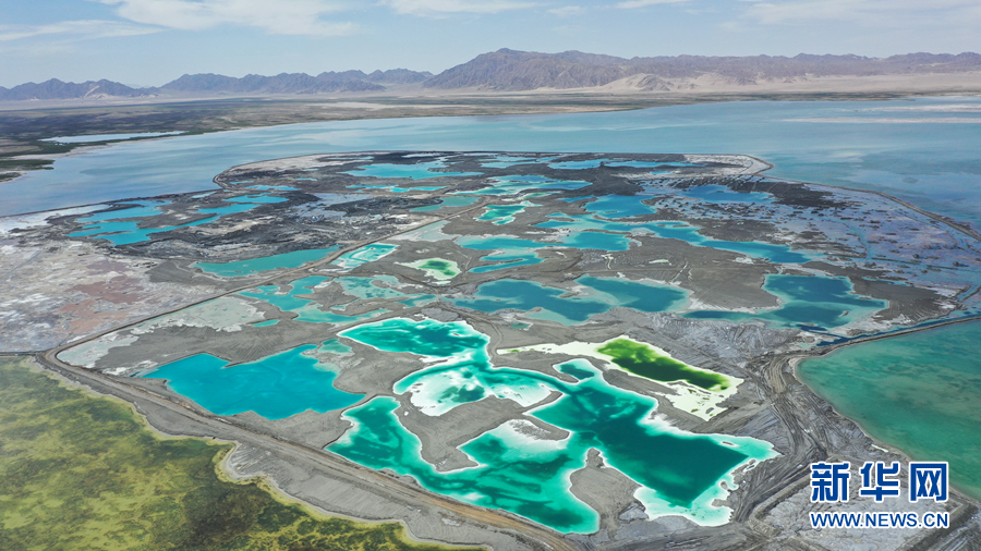 8月15日,航拍地處青海省海西州茫崖市的翡翠湖。翡翠湖是一個(gè)人工鹽湖,田字狀的湖水呈現(xiàn)出青翠的色彩。[詳細(xì)] -
