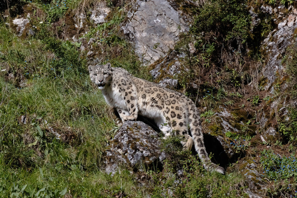 這是在青海玉樹藏族自治州雜多縣昂賽大峽谷內(nèi)拍攝的雪豹(2022年8月6日攝)。新華社發(fā)(姚牧陽 攝)