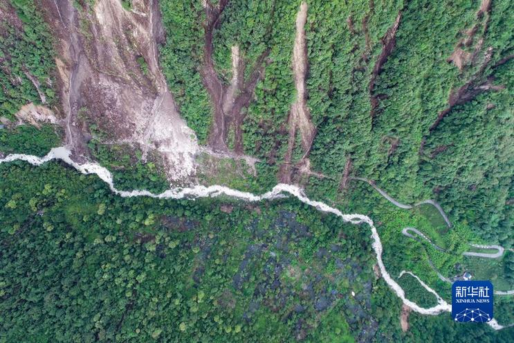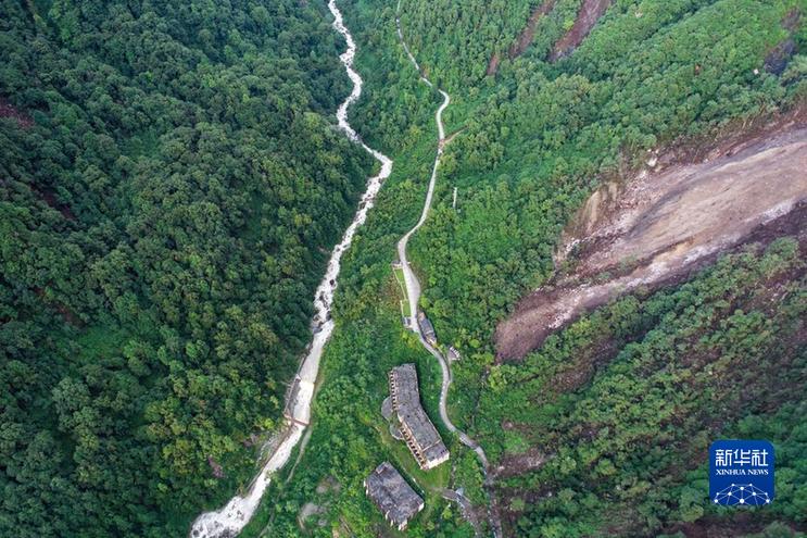 這是9月7日拍攝的海螺溝景區(qū)一號營地附近的崩塌災(zāi)害現(xiàn)場(右側(cè)部分)(無人機(jī)照片)。新華社發(fā)(四川省冶勘設(shè)計(jì)集團(tuán)有限公司供圖)