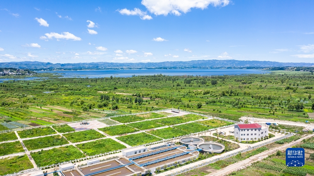 這是貴州草海國(guó)家級(jí)自然保護(hù)區(qū)的萬噸生活污水處理廠(2019年6月20日攝,無人機(jī)照片)。新華社記者 陶亮 攝
