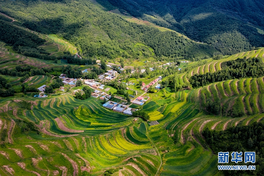 盛夏時(shí)節(jié),地處青海省西寧市湟中區(qū)上五莊鎮(zhèn)包勒村的梯田風(fēng)景如畫,綠意盎然。新華網(wǎng) 宋忠勇 攝
