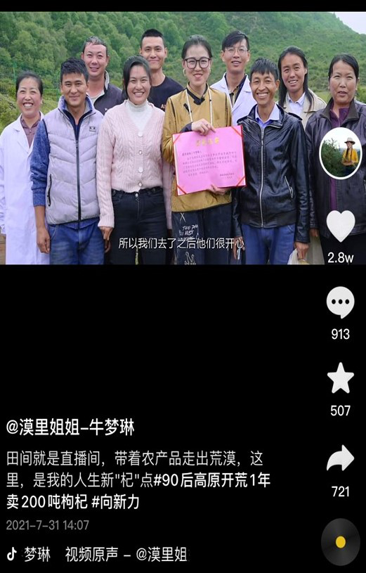 越來(lái)越多的粉絲留言問(wèn)牛夢(mèng)琳,如何購(gòu)買她家種植的枸杞,在經(jīng)歷了幾個(gè)月的準(zhǔn)備工作后,2020年初,牛夢(mèng)琳第一次直播銷售枸杞。
