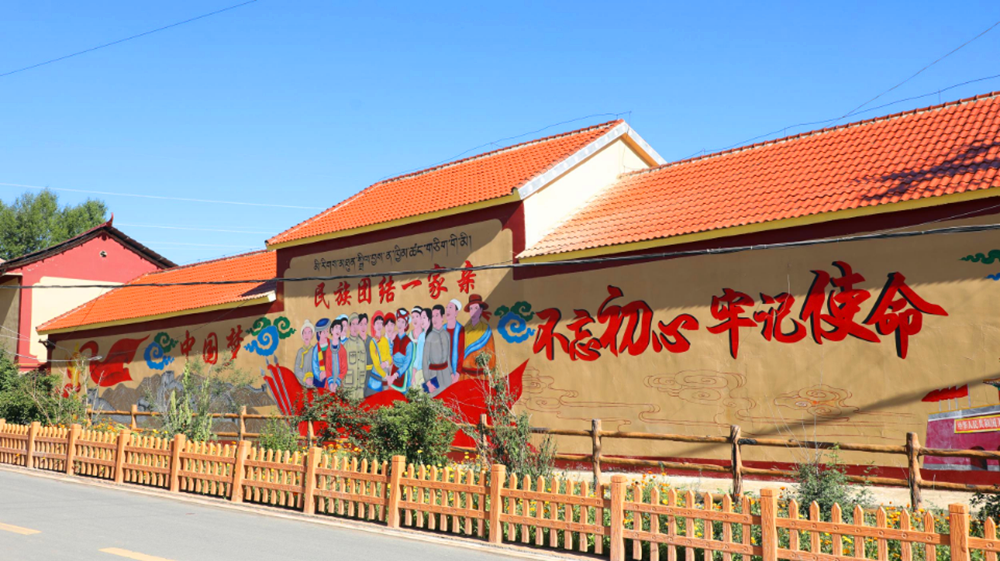 圖為甘南州合作市加拉尕瑪村民族團(tuán)結(jié)文化墻