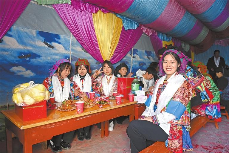 在熱鬧的鞭炮聲和一聲聲祝福中,一場喜慶的藏族婚禮在新康村舉行。搬出大山,遠(yuǎn)離地災(zāi)危險(xiǎn)區(qū),新康村村民本永龍?jiān)趯挸ㄕ麧嵉男录依镉⑺蠲利惖男履铩?/p>