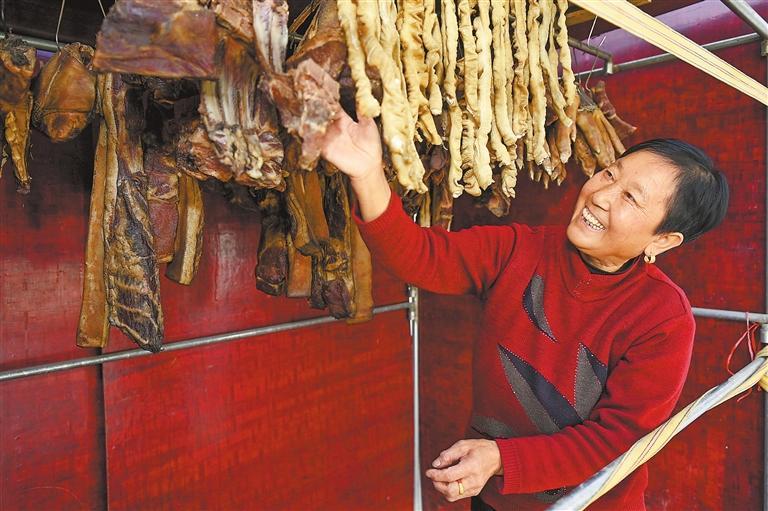 舟曲老人將過年前制作傳統(tǒng)臘肉的習(xí)俗帶到了新康村。