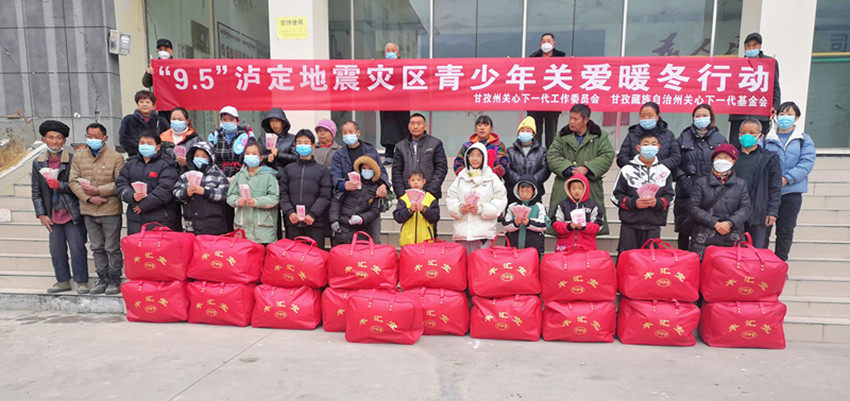 甘孜州縣關工委在“9·5“瀘定地震災區(qū)開展暖冬行動。 何文康 攝