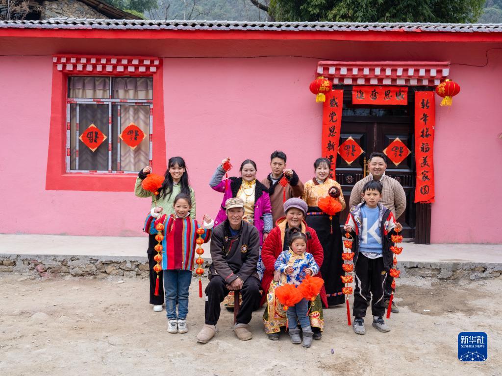 1月22日,王小軍全家在新居前拍攝全家福。石棉縣融媒體中心供圖