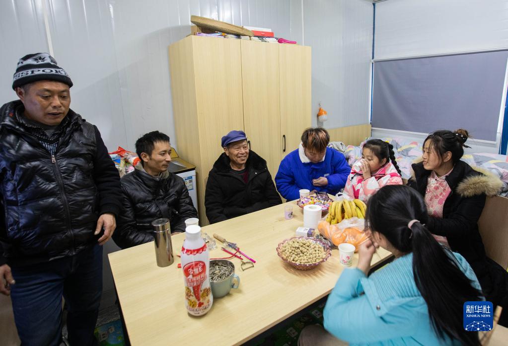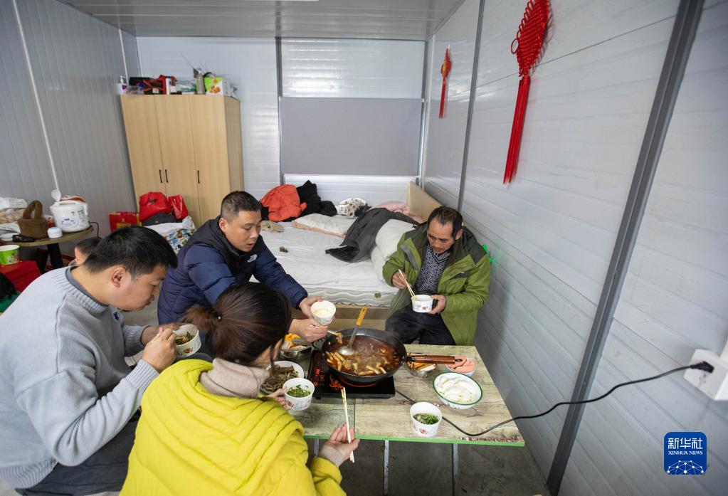 1月26日,瀘定縣磨西鎮(zhèn)磨子溝村李華軍一家在“9·5”瀘定地震磨西鎮(zhèn)安置點吃午飯。新華社記者江宏景攝