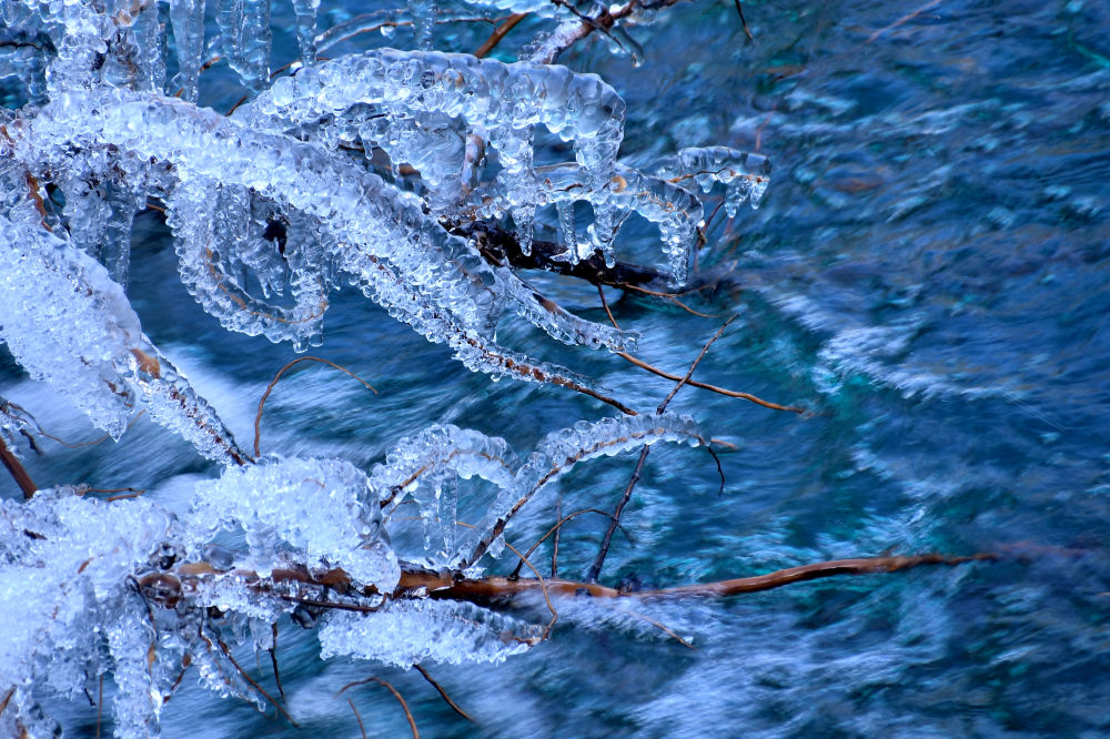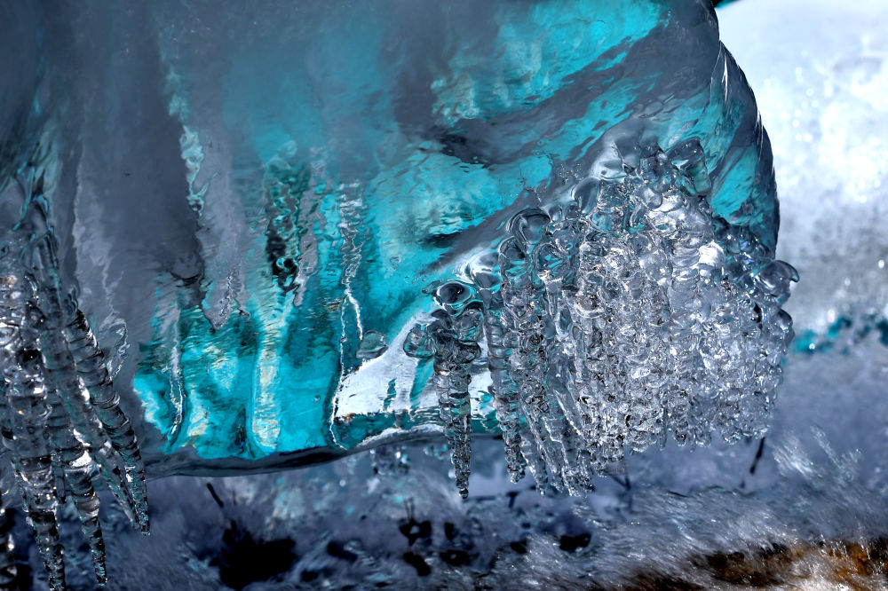 “潔凈的空氣和水是形成藍(lán)冰的基礎(chǔ)條件,隨著氣溫持續(xù)降低,冰層厚度越厚,藍(lán)冰也會(huì)格外明顯?!毙ぞS陽(yáng)說(shuō)。