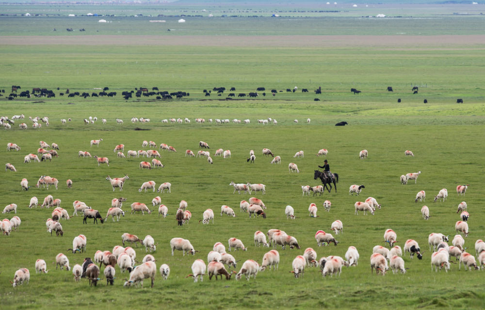 牛羊徜徉在四川若爾蓋濕地國(guó)家級(jí)自然保護(hù)區(qū)里(2022年7月25日攝)。新華社 江宏景 攝