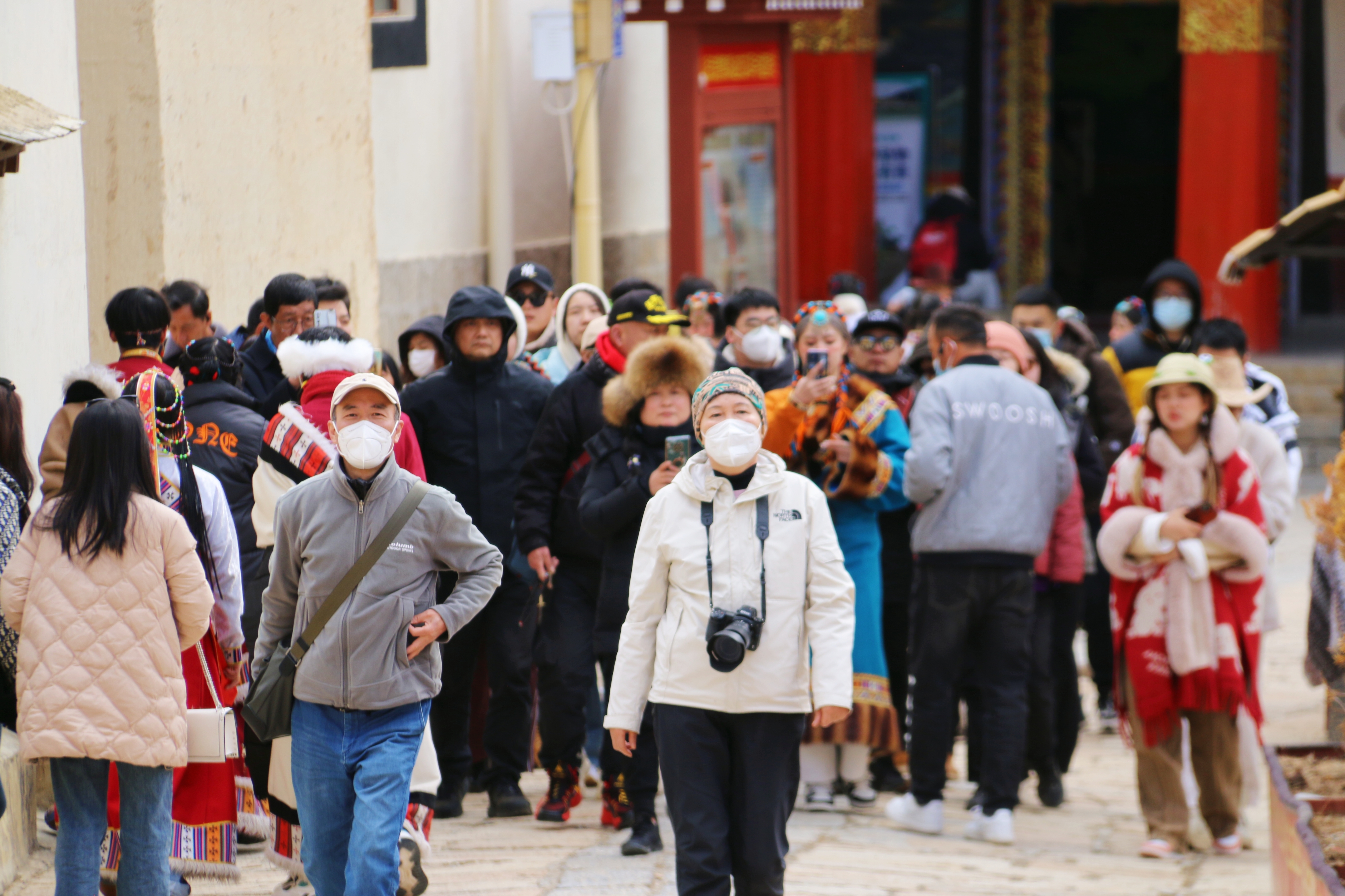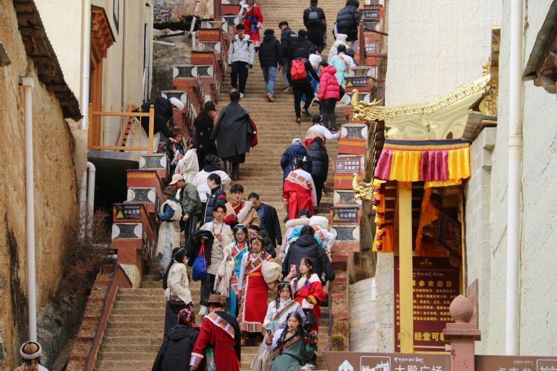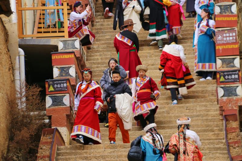 近日,香格里拉旅游持續(xù)升溫,松贊林景區(qū)游人如織,游客們紛紛身著民族服飾與景點合影留念。