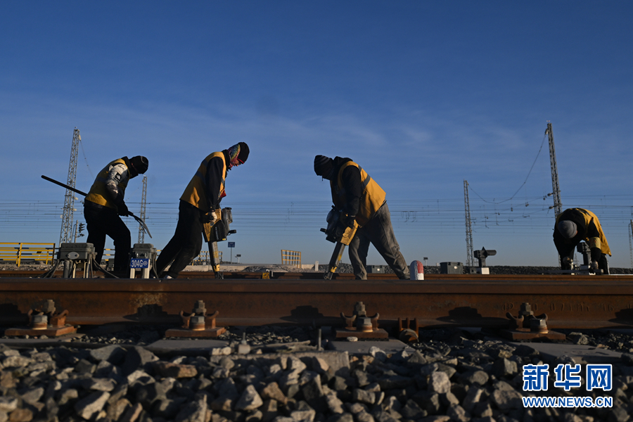 2月7日,中國(guó)鐵路青藏集團(tuán)有限公司格爾木工務(wù)段格南線路工區(qū)的職工在格爾木南站施工。新華社記者 張龍 攝