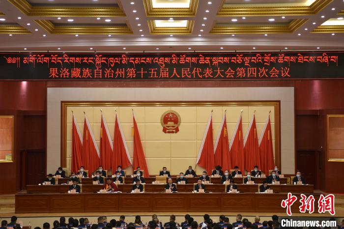 圖為果洛藏族自治州第十五屆人民代表大會(huì)第四次會(huì)議召開?!「谋!z