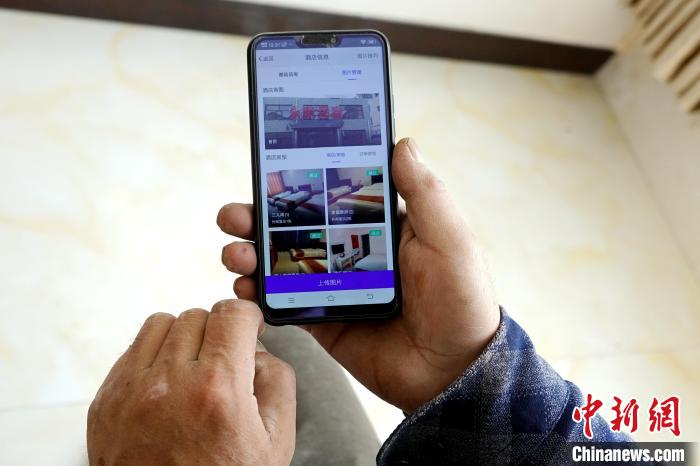 圖為村民展示自家民宿在旅游平臺等待訂單。馬銘言 攝