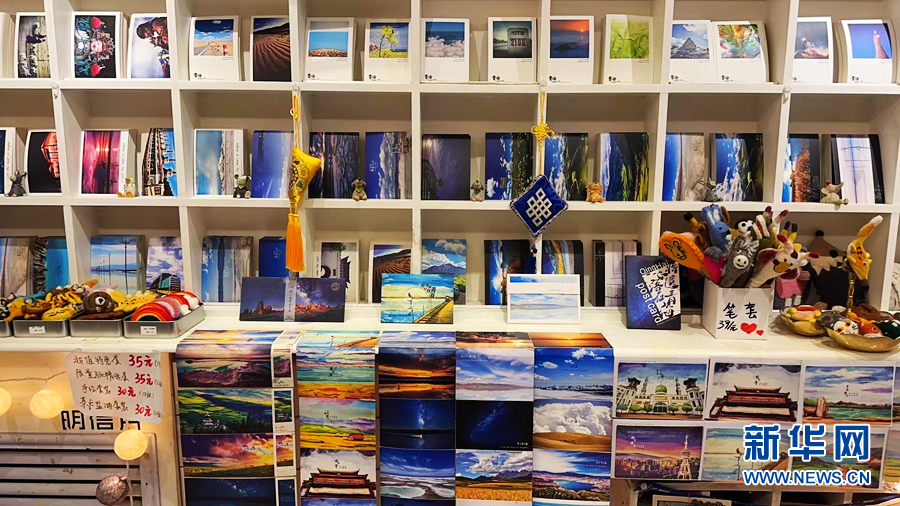 文創(chuàng)小店的店員汪小小向記者介紹:“這些圖案都是我們自己拍攝的,目的就是讓它們‘飛’到全國(guó)各地、全世界,讓更多人看到青海美景。我們的明信片還可以代寄,與之相匹配的還有特色郵戳,蓋在明信片上很有儀式感?!蓖粜⌒≌f(shuō)。