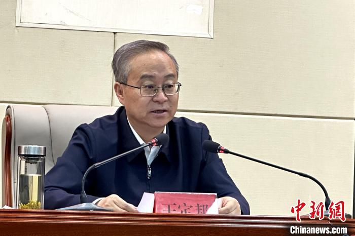 圖為海西州委書記、州總林長(zhǎng)王定邦在動(dòng)員會(huì)上講話?!±铍h 攝
