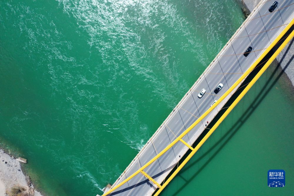 4月9日,車(chē)輛從大橋上駛過(guò)(無(wú)人機(jī)照片)。新華社記者 耿輝凰 攝