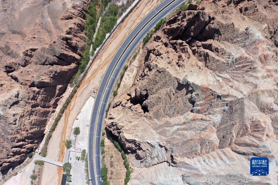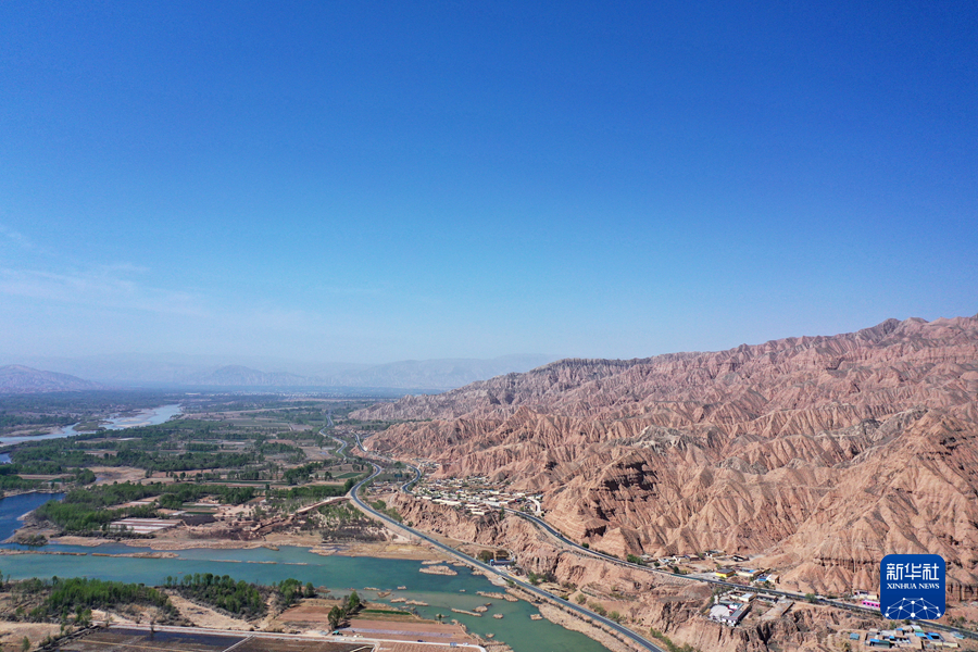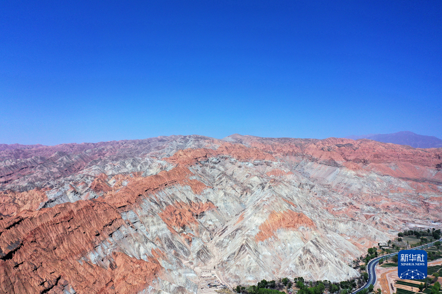 這是4月17日拍攝的青海省海南藏族自治州貴德縣境內(nèi)的丹霞地貌(無(wú)人機(jī)照片)。新華社 趙玉和 攝