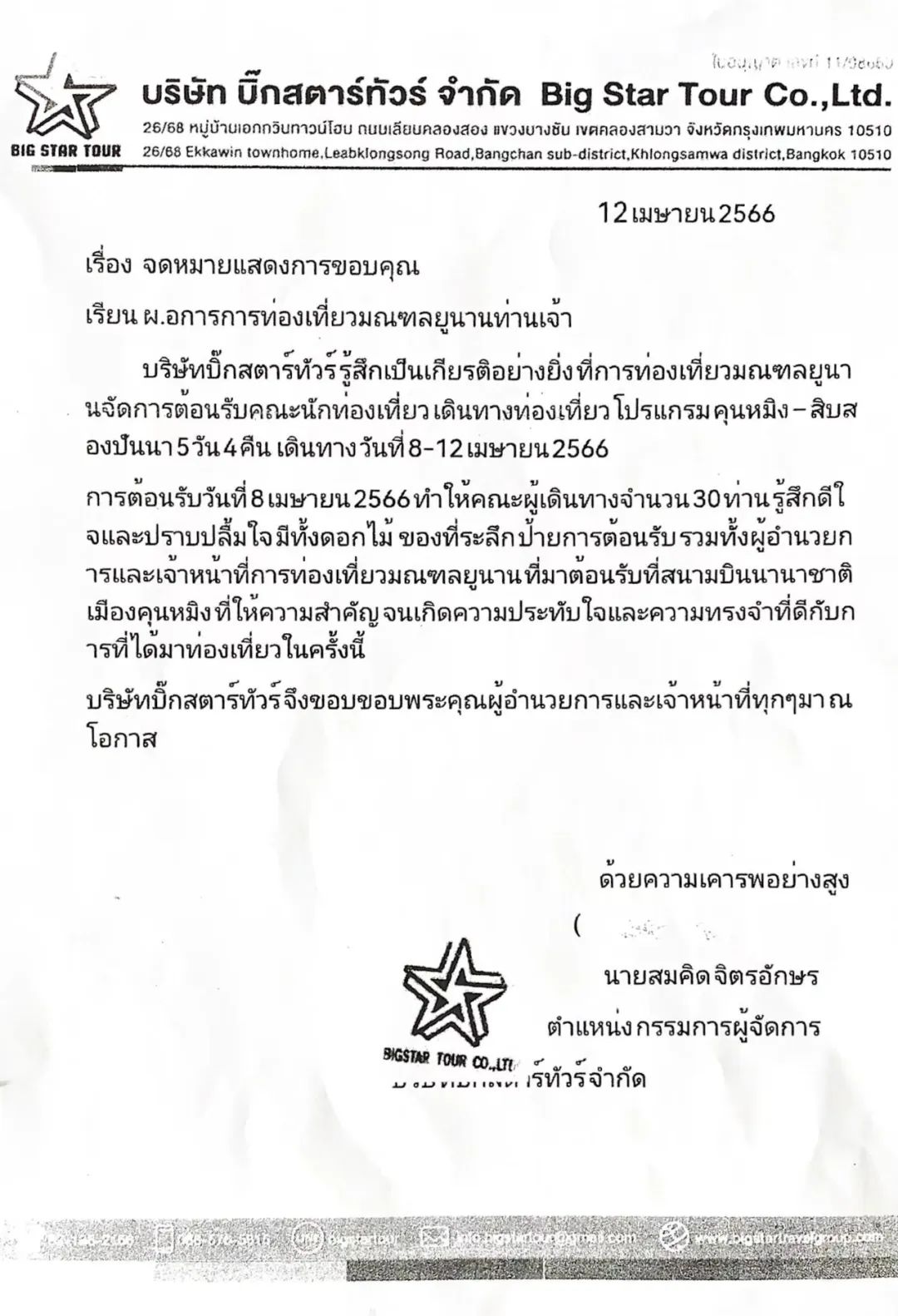 紙短情長!一封寫有30位泰國游客名字的感謝信