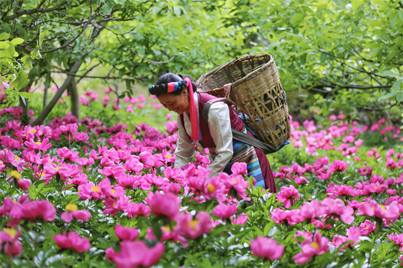 五月,正是芍藥花開的最佳時節(jié)。在維西縣塔城鎮(zhèn)其宗村村民楊小花家的芍藥地中,大片的芍藥花競相開放,花團錦簇、花香四溢,楊小花正在田間忙碌著采摘芍藥花朵,芍藥花及根采挖后都可出售,在增加收入的同時也成為田間地頭一道美麗的風(fēng)景線。