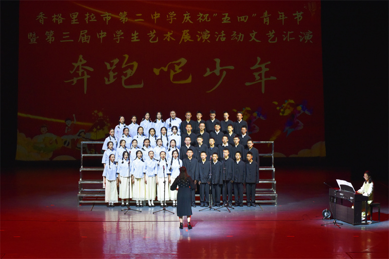 5月4日,香格里拉市第二中學在獨克宗古城花巷劇院開展慶?!拔逅摹鼻嗄旯?jié)暨香格里拉市第二中學第三屆文藝匯演活動。