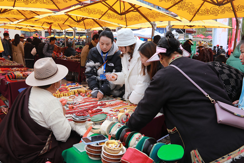 “五一”期間游客甘孜縣古玩市場“淘寶”忙