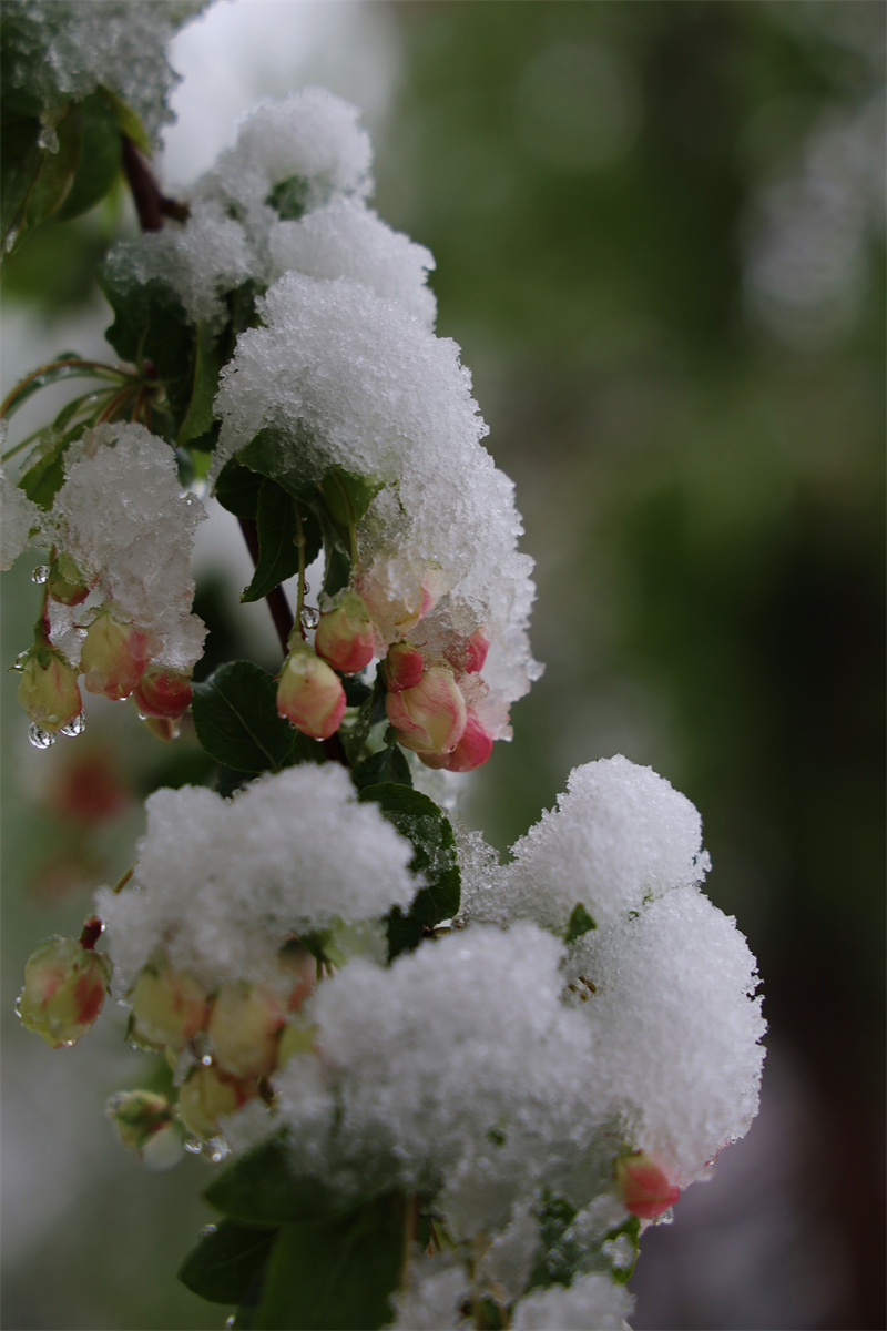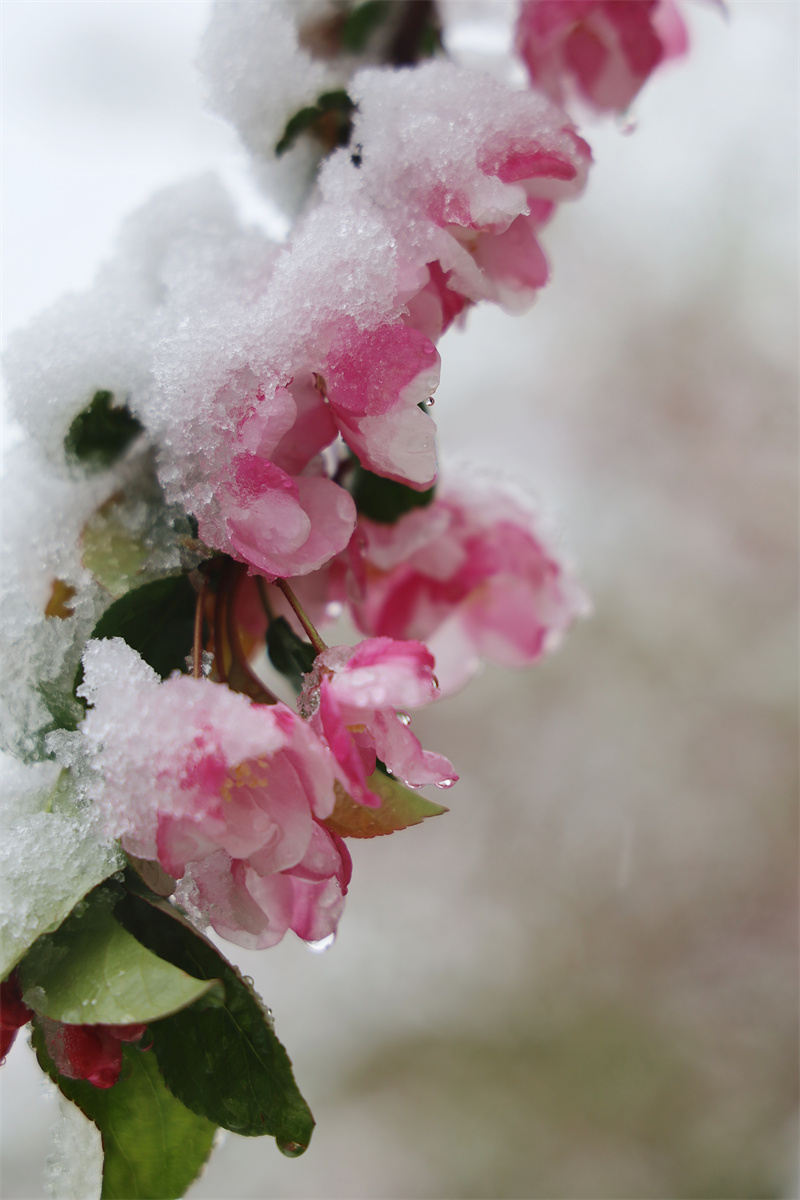花映雪,雪融花,雪水晶瑩,花瓣嬌艷,攝影愛(ài)好者在大雪紛飛中記錄香格里拉的詩(shī)情畫(huà)意。