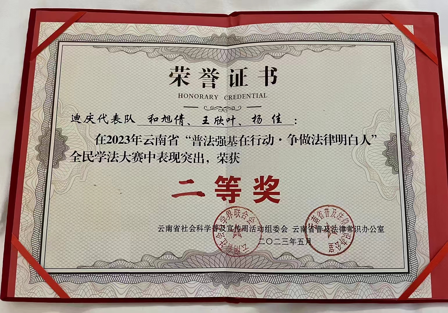 迪慶代表隊(duì)在“普法強(qiáng)基在行動·爭做法律明白人”全民學(xué)法大賽中榮獲二等獎