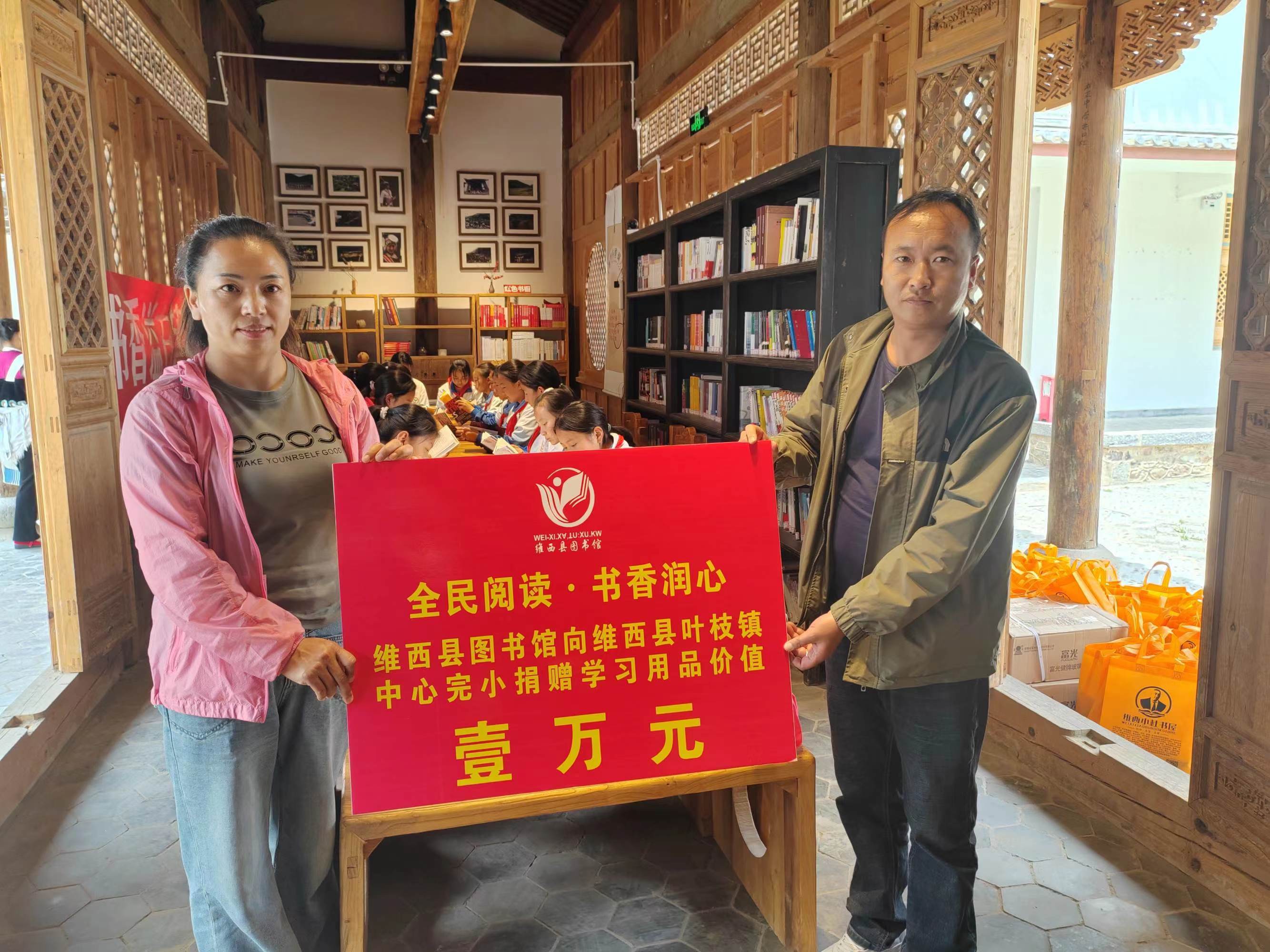 當(dāng)天,還在葉枝鎮(zhèn)鄉(xiāng)愁書(shū)院開(kāi)展了讀書(shū)分享活動(dòng),維西縣圖書(shū)館現(xiàn)場(chǎng)向葉枝鎮(zhèn)中心完小捐贈(zèng)了價(jià)值10000元的學(xué)習(xí)用品。