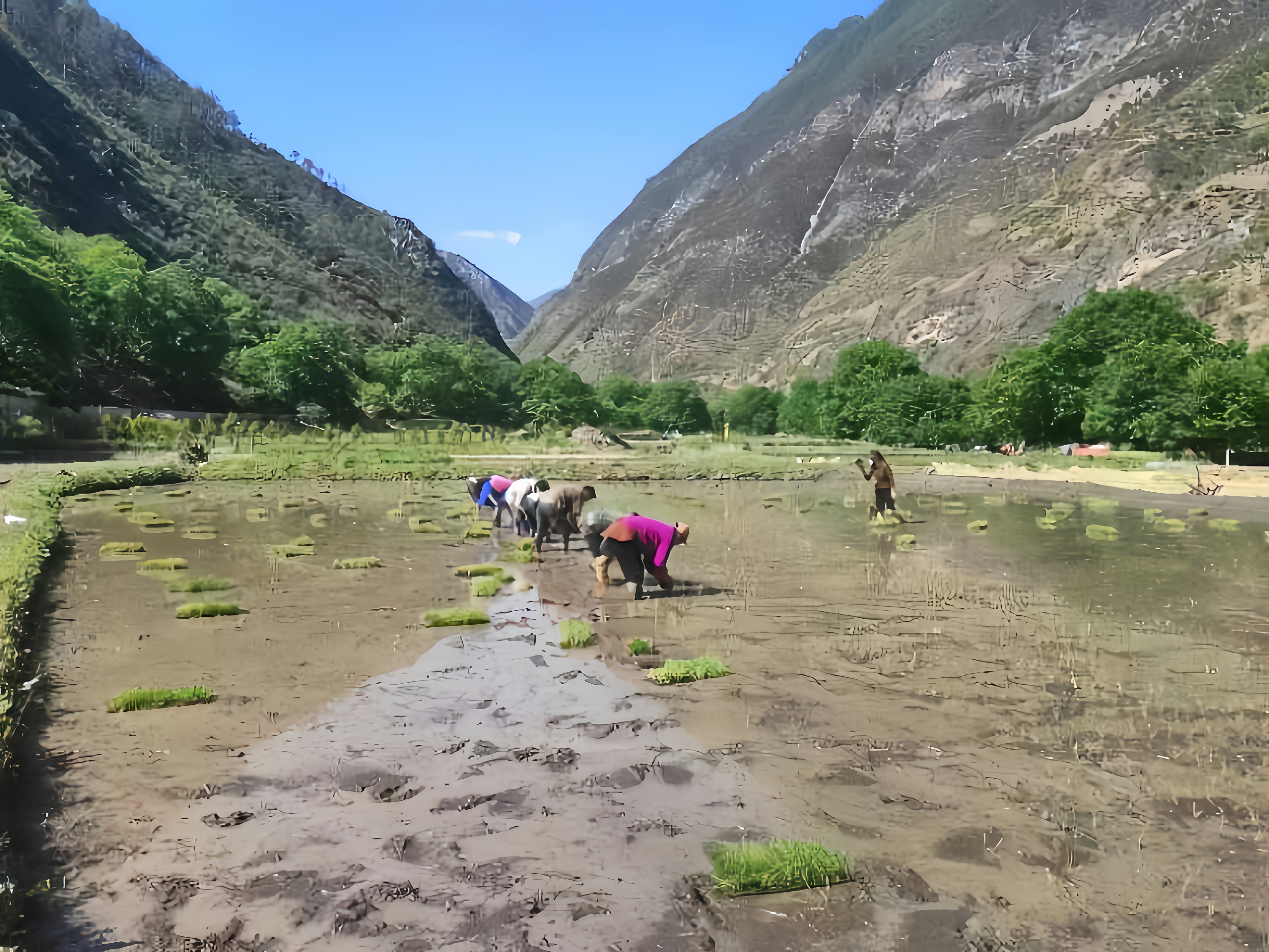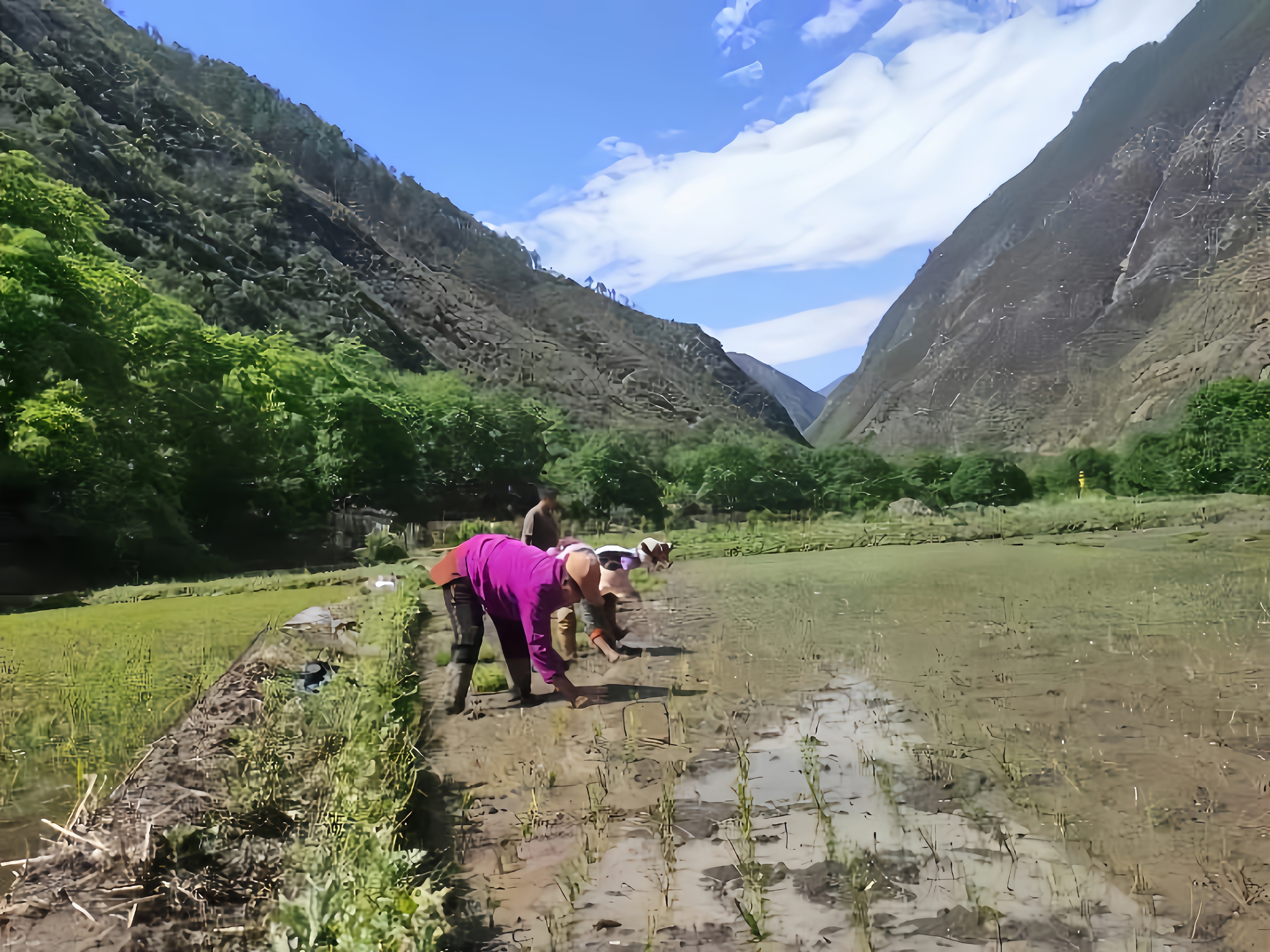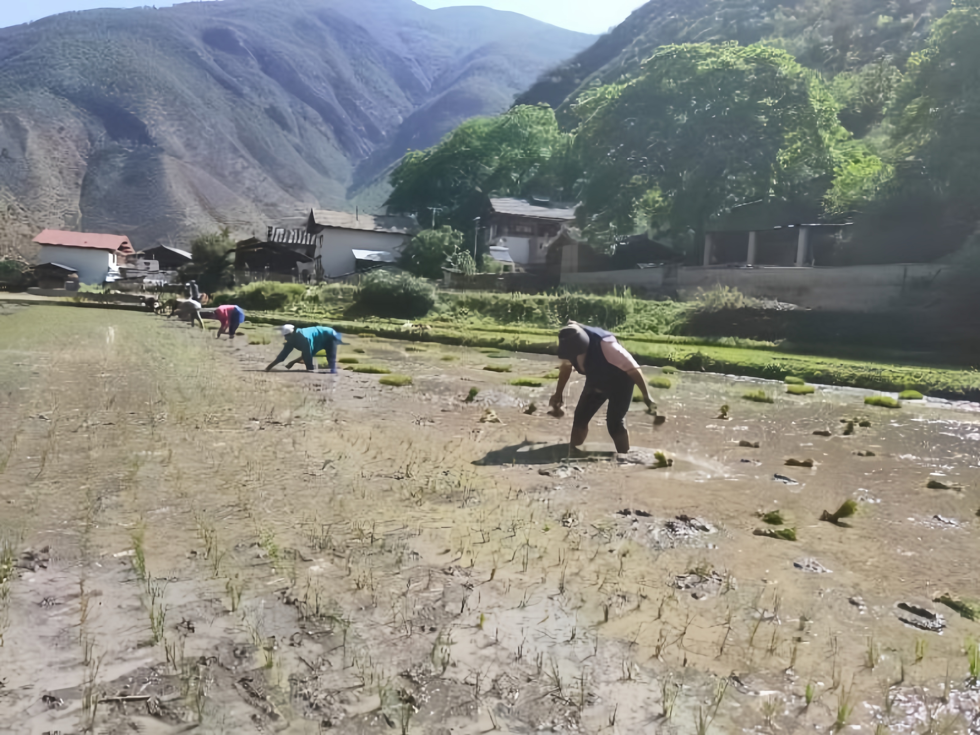 德欽縣霞若村民田間地頭插秧忙